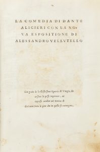 Alighieri Dante, La Commedia [...] con la nova esposizione di Alessandro Vellutello. Impressa in Vinegia: per Francesco Marcolini, 1544.