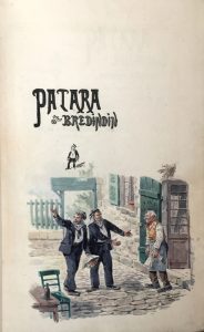 Paris, Léon Vanier, 1884. Grand in-8, reliure à la Bradel (signée Pagnani) demi-maroquin grenat, tête dorée. Couvertures et dos conservés. Couverture illustrée (qq. rousseurs). (4)-viii-149-(3) pp. Nombreuses vignettes dans le texte. Exemplaire sur papier de Hollande, justifié (n° 77) et paraphé par l’éditeur au verso du faux-titre. Bel exemplaire illustré d’une aquarelle de Paul Léonnec sur le faux-titre. Les dessins originaux de Paul Léonnec (1842-1899) pour « Patara et Bredindin » furent exposés au Salon de 1883. Le texte était paru dans la collection des Physiologies sous le titre Physiologie du Matelot en 1843. Vicaire V, 211; VI, 626.