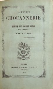 Épidermure sur le premier plat, coiffes et coupes usées. (4)-548 pp. Pliures, qq. rousseurs. Ex-libris : Bibliothèque du Franc-Port. Edition originale. • La Petite Chouannerie ou Histoire d’un Collège breton sous l’Empire. Paris, Olivier Fulgence, 1842. In-8, reliure (signée Petitot) demi-veau brun, dos à 4 nerfs orné, date de l’édition en pied. Dos un peu passé. Couvertures conservées. (4)-598 pp. Qq. rousseurs. Edition originale. Sacher, p. 179.60 /
