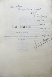 THÉÂTRE. Réunion d’ouvrages essentiellement XIX e dont : • GLAIS-BIZOIN (Alexandre). Le vrai Courage. Saint-Brieuc, Guyon, 1862. • ROPARTZ (J.Guy). La Batte. Lemerre, 1891. Exemplaire sur Hollande. Envoi à Charles Guérin. ...