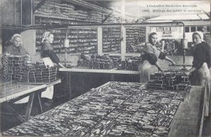 Tiercelin, A. Paban, Léon Durocher, O. De Gourcuff, A. Dupoux. Vannes, Le Beau, 1903. In-8, broché. 29-(1) pp. Non coupé. • BOTT (Antoine). Au Pays de la Faim. La Crise Sardinière. Revue mensuelle illustrée. Paris, La Bretagne nouvelle, s. d. In-4, broché. Couverture illustrée (défraîchie, détachée, restaurée). 8 pp. • BOULARD (Jean-Claude). L’Épopée de la Sardine. Un siècle d’histoires de pêches. Rennes, Éd. Ouest-France, 1991. Grand in-8, broché. 223-(1) pp. et pl. hors texte (Reproductions en noir de photographies et tableaux). • CARTE POSTALE. L’Industrie Sardinière Bretonne. Huilage des boîtes de sardines n°1568. Carte expédiée (1904). On joint : HALL (Basil). Les Bermudes - Le Saut de la Baleine. Extrait de la Revue de Paris, 7 Octobre 1832 (p. 5 à 20). Rousseurs.50 /