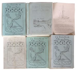 [ILE-aux-MOINES]. La Gazette de l’Ile-aux-Moines. Édité par le Syndicat d’initiative. 1973-1988. In-4, agrafés, en photocopie. Mensuel de 12 ff. imprimés au seul verso. Du n° 1 (octobre 1973) au n° 159, dernier paru (1988)....