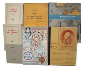 • DRÉNOU (Patricia). Impressions de Lorient. 3 siècles d’estampes. Faouët, Atelier Liv’Éditions, 2008. In-4, reliure éditeur. 269 pp. Riche iconographie. Très bon état. • BRETON (Marie-Françoise). Étude Historique, Urbaine et Sociologique de L’Orient, XVIIIe s. Lorient, auto-édition, 1985. In-4, broché. Couverture illustrée. Étude tapuscrite ronéotypée. (6)-179 ff. Nombreux documents photocopiés (cartes, tableaux, etc). Envoi de l’auteur à JLD. • COLLECTIF. L’Année 1789 dans le Pays de Lorient. Lorient, Association pour le Bi-Centenaire de la Révolution Française, 1988. In-4, broché. Étude tapuscrite ronéotypée. (2)-213 ff. Nombreux documents photocopiés.70 / 1