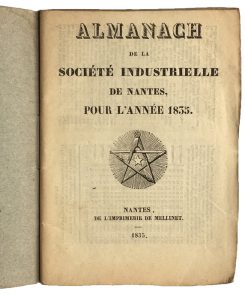 [NANTES]. Réunion de trois almanachs : • Etrennes Nantaises pour l’an 1806. Nantes, imp. Brun, s. d. In- 16, broché. Couverture d’attente. 175-iii pp. et un tableau dépliant. • Almanach de la Société Industrielle de Nantes ...