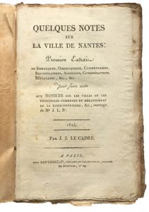 [NANTES]. TOURISME. Réunion d’ouvrages dont : • LE CADRE (J. J.). Quelques Notes sur la Ville de Nantes. Premier extrait de remarques, observations, commentaires, rectifications… Paris, Dauthereau, 1824. ...