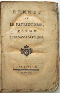 Rare ouvrage attribué à Poulain-Delaunay composé d’une partie en vers et de documents sur Rennes.