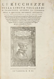 Alunno Francesco, Le ricchezze della lingua volgare [...] sopra il Boccaccio novamente ristampate... In Vinegia: s.e., 1551 (Al colophon:) In Vinegia: in casa de' figliuoli di Aldo, 1551.