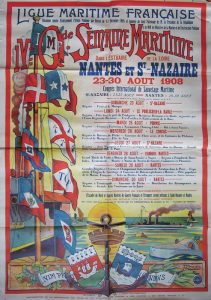 [AFFICHE]. NANTES. IV e G de Semaine Maritime dans l’estuaire de la Loire Nantes et St Nazaire. 23-30 août 1908. Nantes, imp. Guéneux, Robert Succ. Affichage Publicité Ch. Lhermitte Nantes. Grande affiche (140 x 100 cm) par...