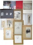 GRANDJOUAN (Jules). Réunion de dessins et d’ouvrages : • Ensemble de 8 dessins et croquis et 16 épreuves, la plupart pour illustrer Bubu de Montparnasse . • 7 portraits au crayon dont Gustave Hervé, ...