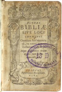 Cachet d institution religieuse sur le titre.Conçu à l usage des théologiens, ce florilège contient selon un ordre alphabétique des mots de la Bible ou des expressions sur divers sujets de morale et de religion renvoyant à des citations bibliques, des extraits d auteurs sacrés ou profanes de l Antiquité et du Moyen-Âge.