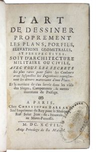 [GAUTIER (Henri)]. L’ART DE DESSINER PROPREMENT LES PLANS, PORFILS (sic), ELEVATIONS GEOMETRALES, ET PERSPECTIVES, soit d’Architecture militaire ou Civile, avec tous les secrets les plus rares pour faire les Couleurs avec lesquelles les...