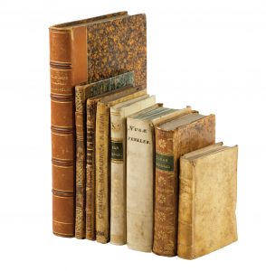 In-8° (mm 168x95). Pagine 79, [1]. Fregio xilografico al frontespizio. Lieve gora d'acqua nell'angolo interno di poche carte e leggere fioriture sparse. Legatura settecentesca in mezza pelle con piatti marmorizzati e titoli dorati su tassello applicato al dorso. Lievemente lisa. SI AGGIUNGE: Bocchini Bartolomeo, La prima parte della corona macheronica di Zan Muccina (-seconda parte). In Bologna: Per gli Heredi di Domenico Barbieri, s.d. In-12° (mm 138x70). Pagine 48; 71, [1]. Fregi tipografici ai frontespizi. Legatura settecentesca in piena pergamena rigida con titoli dorati su tassello al dorso. SI AGGIUNGE: Bolla Bartolomeo, Nova novorum novissima sive Poemata stilo Macaronico conscripta quae faciunt crepare lectores ob nimium risus et salatre capras... S.l.: s.e., 1604. In-8° (mm 145x85). Carte 50. Esemplare brunito. Legatura settecentesca in piena pelle marmorizzata con titoli impressi in oro su tassello al dorso. Timbro di collezione privata sul frontespizio e sulle successive 3 carte. SI AGGIUNGE: Nugae venales, sive Thesaurus ridendi & Iocandi... S.l.: s.e., 1662. In-12° (mm 130x75). Pagine [8], 252, [14], inclusa 1 antiporta incisa in rame. LEGATO CON: Studentes sive Comoedia de vita... (1647); LEGATO CON: Placentius Jean-Léon, Pugna porcorum per P. Porcium, poëtam (1642); LEGATO CON: Crepundia poetica somniata... (1642). Legatura coeva in piena pergamena con risvolti e titoli manoscritti al dorso. SI AGGIUNGE: Nugae venales, sive Thesaurus ridendi & Iocandi [...] Editio ultima... S.l.: s.e., 1698. In-12° (mm 128x72). Pagine 323 [i.e. 325]. Bella legatura settecentesca in vitello nocciola marmorizzato con cornice di filetto puntinato e figure geometriche impressa in oro ai piatti e monogramma V.S. entro serto d'alloro al centro del piatto anteriore; titoli dorati su tassello al dorso. Ex-libris Bibliotheca Suchtelen al contropiatto anteriore. SI AGGIUNGE: Maestro Stoppino [pseud. di Orsini Cesare], Capriccia macaronica. Venetiis: Apud Iacobum Sarzinam, 1636. In-12° (mm 145x75). Pagine 166. Legatura coeva in piena pergamena con titoli manoscritti al dorso. SI AGGIUNGE: Id., Capriccia macaronica. Cum nova appendice. Venetiis: s.e., 1653. In-12° (mm 96x72). Pagine 192. Legatura coeva in piena pergamena con titoli manoscritti al dorso. SI AGGIUNGE: Delepierre Octave, Macaronéana ou Mélanges de littérature macaronique... Paris: G. Garcia, Libraire a Brighton, 1852. Lotto di 8 opere maccaroniche fra le quali si segnala il primo libro sulla bassa-danza, del celebre poeta provenzale Antoine Arène, il cui nome è attestato in una miriade di varianti (Arena, Sable, de la Sable, Sablon ecc), nato a Sollies-Pont all'inizio del XVI secolo. In virtù del suo primato e delle preziosi informazioni ivi contenute, questo testo conobbe innumerevoli ristampe: l'Autore fornisce la sequenza di passi della più comune bassa-danza praticata al tempo in Francia e Inghilterra e quelli di altre basse-danze meno comuni e conosciute, insieme ai loro nomi. In questo lotto anche due diverse edizioni della rara raccolta delle Nugae venales, le 'ciance da vendere', la prima edizione dei Capriccia Macaronica di Cesare Orsini (Piantanida II, 3164) e una versione successiva sempre stampata a Venezia, in parte originale (Melzi III, 101; Piantanida II, 3165).