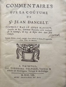 • DUSAULT. COMMENTAIRE SUR L’USANCE DE SAINTES, conférée avec la Coûtume de Saint Jean d’Angely.