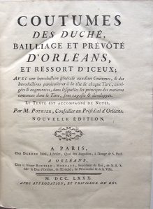 POTHIER (Robert Joseph). COUTUMES DES DUCHÉ, BAILLIAGE ET PRÉVÔTÉ D’ORLÉANS, ET RESSORT D’ICEUX ; Avec une Introduction générale auxdites Coutumes, & des Introductions particulieres à la tête de chaque Titre, corrigées & augmentées,...