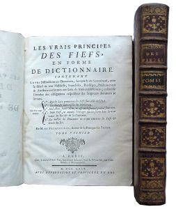 • FRÉMINVILLE (de). LES VRAIS PRINCIPES DES FIEFS EN FORME DE DICTIONNAIRE Contenant leurs Distinctions en dominans, servans & en suzeraineté; avec le détail de leur Noblesse, Fdranchises, Privilèges, Préeminences & Attributs conformes aux Loix de leurs établissemens…