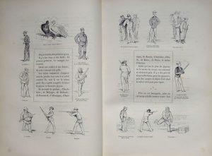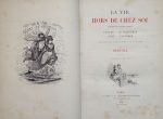 BERTALL. LA VIE HORS DE CHEZ SOI. Comédie de notre Temps. Études au crayon et à la plume. 2e édition. Paris, Plon, 1876. In-8, reliure décorative chagrin vert, chiffre doré MA sur le plat, tranches rouges ornées de petits fers dorés à...
