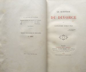 DUMAS Fils (Alexandre). LA QUESTION DU DIVORCE. Paris, Calmann-Lévy, 1880. Grand in-8, reliure demi-chagrin rouge à coins, dos à 5 nerfs orné, tête dorée, témoins conservés.