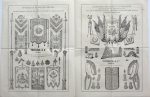 Catalogue (1 f. double et 1 f. simple) in-folio (35 x 26,5 cm) comprenant deux pages intérieures entièrement illustrées de costumes, bannières, drapeaux, décorations… les prix des objets en première page et les prix des ouvrages en 4e page.