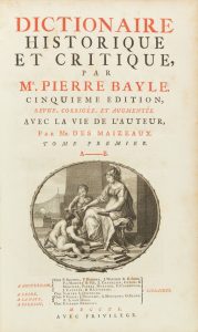 Bayle Pierre, Dictionnaire historique et critique [...] cinquième édition. Tome premier (-quatrième). Amsterdam [et al.]: chez P. Brunel [et al.], 1740.