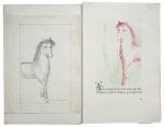 Édition originale tirée à 28 ex. hors commerce et 330 ex. numérotés sur vélin d’Arches pur fil dont celui-ci, enrichi d’un bel envoi de Marcel Jouhandeau sur le faux-titre évoquant le libraire Richard Anacréon, et accompagné du dessin original signé au crayon de Marie Laurencin reproduit à la page 25 de l’ouvrage, pour illustrer la nouvelle La jument.