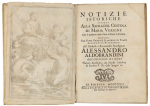 Bianchini Giuseppe, Notizie istoriche intorno alla sacratiss. cintola di Maria Vergine. Firenze: Gius. Manni, 1722.
