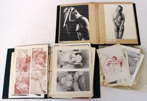 "CURIOSA", photos + reproductions photos + gravures érotiques et pornographiques: (x2) classeurs + chemise