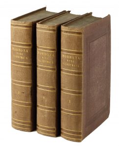 In-8° (mm 190x120). Pagine XXIV, 507, [2], 1 bianca con 1 ritratto dell’Autore inciso in rame al frontespizio e 7 tavole calcografiche fuori testo legate a fine volume; XXIII, [1], 560 [1], 1 bianca con 17, di cui 11 numerate 1-11; [2], XVI, 589,[2], 1 bianca con 8 tavole incise in rame fuori testo. Alcune fioriture e arrossature, una gora marginale alle prime 50 carte del secondo volume, ma esemplare ben conservato, completo e parzialmente in barbe. Legatura in tela editoriale con cornici di duplici filetti impresse a secco ai piatti e titoli in oro al dorso. Al contropiatto anteriore di tutti i volumi applicato ex-libris di antica provenienza. Seconda edizione, rispetto alla prima corredata di un numero maggiore di tavole incise in rame. Tra queste ricordiamo L’inferno del Camposanto di Pisa di Baccio Baldini, realizzata a partire dall’affresco dell’Inferno secondo Dante dipinto da Andrea Orcagna, e San Girolamo Penitente, variamente attribuito allo stesso Baldini o a Maso Finiguerra (e tratto da un disegno del Pollaiolo). In particolare di queste due tavole, tratte da rami del XV secolo, non si conoscono altre tirature. Le altre tavole sono di Fambrini, Canacci e dello stesso Da Morrona. Cfr. Cicognara, 4310: «Opera utilissima»; Schlosser-Magnino, 512; Lozzi, 3666; Hind I, 58; Bocca, 4503; Brunet, 25562. Moreni II, 101 cita invece la prima edizione.