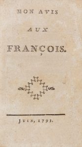 Ducray-Duminil François Guillaume, Mon avis aux François. Juin, 1793.