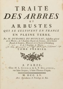 Duhamel du Monceau Henri Louis, Traité des arbres et arbustes qui se cultivent en France en pleine terre [...]. Tome premier (-second). A Paris: Chez H.L. Guerin & L.F. Delatour, 1755.