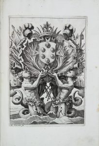 In-folio (mm 355x235). Pagine [8], 260, XXIII con una antiporta incisa in rame con stemma della famiglia Medici, 1 ritratto del Dedicatario in principio del volume e 37 tavole a piena pagina interne alle pagine. Numerosi capilettera, testatine e finalini incisi in legno, anch’essi con ricorrente riproposizione dello stemma mediceo. Alcune macchie e arrossature marginali, minimi strappetti a rare carte talvolta restaurati, ma complessivamente buon esemplare, marginoso, con le tavole in ottimo stato. Legatura in piena pergamena coeva con titolo manoscritto sul dorso a 5 nervi. Tagli spruzzati. Minimi difetti. Prima edizione di questa celebre opera del Fontana sulle imprese militari dei Cavalieri di Santo Stefano, resa pregevole dalle 37 belle incisioni calcografiche realizzate da Hendrick Verschuring che ripropongono i teatri di guerra delle più importanti battaglie navali combattute dalla flotta toscana contro i turchi, come quelle presso Algeri e Namur. Cfr. Choix, 13976; Graesse II, 611; Moreni I, 385: «Sonovi molte figure in rame [...] Evvi in principio una breve notizia della Città di Pisa [...] e di Livorno [...] mentre nel suo porto prendeano l'imbarco i Cavalieri dell'Ordine, ogni mossa dei quali era un corso di vittoria in vittoria»; Piantanida 578: «Le tav. rappresentano assedi e battaglie navali della flotta toscana, soprattutto contro i Turchi, mettendo in risalto le diverse posizioni di combattimento delle due flotte».