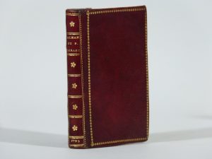 Almanach du Père Gérard, pour l'année 1792, IIIe de la Liberté. Paris, Buisson, 1792. In-24, maroquin rouge, filet perlé doré, dos lisse orné, dentelle intérieure, tranches dorées (Reliure de l'époque). Édition originale, ornée d'un frontispice gravé par Delaunay d'après Borel. Bel exemplaire en maroquin rouge de l'époque. Petite restauration à un coin.