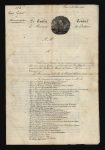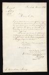 Ensemble trois documents relatifs au monument érigé dans la chartreuse d'Auray, à Brech, en mémoire des victimes de l'expédition de Quiberon de 1795. Une lettre autographe signée du comte de Coutard au duc d'Avaray, datée du 14 novembre 1824. Dans cette lettre d'une page, le vice-président du Comité du monument de Quiberon remercie le souscripteur pour sa participation et s'engage à faire inscrire les noms du vicomte d'Avaray et du marquis de Grave sur le marbre de la chapelle d'Auray. Un prospectus de souscription lithographié, daté du 12 août 1824 et signé des membres du Comité. Une vue du monument par Félix Benoist : Chartreuse d'Auray. Chapelle et monument élevés à la mémoire des victimes de Quiberon. Lithographie en deux tons (420 x 305 mm), interprétée par Philippe Benoist pour La Bretagne contemporaine (Nantes, 1865-1867).