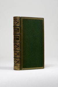 de la vertu du Catholicon d'Espagne, et de la tenuë des Estats de Paris. Ratisbonne, Mathias Kerner, 1664. Petit in-12, maroquin vert, triple filet doré, dos orné, dentelle intérieure, tranches dorées sur marbrure (Trautz-Bauzonnet). Jolie édition imprimée à Bruxelles, chez François Foppens, et que l'on fait entrer dans la collection des Elzevier. Ce livre a été imprimé deux fois par Foppens, sous cette même date. Celle-ci, la seconde, sans errata, est préférable car elle renferme, en plus de la planche dépliante, les figures du charlatan espagnol et du charlatan lorrain. Bel exemplaire en reliure signée Trautz-Bauzonnet. Willems, n°2007 – Brunet, V, 145.