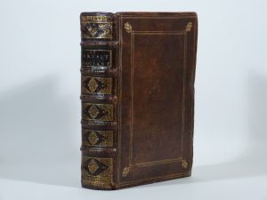 Le Parfait négociant, ou Instruction générale pour ce qui regarde le commerce des marchandises de France, et des pays estrangers. Paris, Louis Billaine, Jean Guignard, 1679. 2 parties en un volume in-4, veau granité, décor à la Du Seuil, dos orné, roulette sur les coupes, tranches jaspées (Reliure de l'époque). Seconde édition, en partie originale. Publiée quatre ans après la première édition, elle a été augmentée par l'auteur de plusieurs questions sur le commerce des lettres et billets de change, les faillites, le Banco de Venise, le commerce des soies de Messine, etc. Elle est suivie d'un intéressant Traité du commerce qui se fait par la mer Méditerranée dans toutes les échelles du Levant, dont Chypre, Constantinople, Alexandrie et Le Caire. L'ouvrage comprend une planche hors texte présentant des balances, ainsi qu'une vignette aux armes de Colbert et une lettrine dans l'épître dédicatoire. Dans cet exemplaire, la première partie est à l'adresse de Louis Billaine et la seconde à celle Jean Guignard. Reliure restaurée, coiffes refaites, gardes renouvelées, quelques petites mouillures et feuillets brunis.