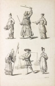 Desseins des édifices, meubles, habits, machines et ustensiles des Chinois. Londres, J. Haberkorn, chez l'auteur, A. Millar & J. Nourse, 1757. In-folio, veau marbré, double filet doré, dos orné, roulette sur les coupes, tranches rouges (Reliure de l'époque). Première édition française de ce bel ouvrage sur l'art et l'architecture chinois. Elle a été publiée en même temps que l'originale anglaise, avec les mêmes planches gravées. L'illustration se compose de 21 planches hors texte dessinées par l'auteur et gravées sur cuivre par P. Foudrinier, P. Sandby, C. Grignion et d'autres, montrant des édifices chinois (pavillons, pagodes, temples et maisons), mais aussi des intérieurs, meubles, vases, bateaux, objets, costumes, etc. L'architecte écossais William Chamber (1723-1796) eut l'occasion de découvrir et d'étudier l'architecture chinoise au cours de voyages qu'il entreprit pour la Compagnie des Indes orientales suédoise entre 1740 et 1749. Rentré en Angleterre et devenu architecte, puis contrôleur des Bâtiments du roi, il répandit là-bas le goût des maisons et des jardins à la chinoise. Manques sur le dos et les coins, coiffe inférieure et pièce de titre manquantes, quelques petites rousseurs, coupure marginale à la pl. XVII. Cordier, Sinica, 1570.