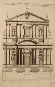 Insignium Romæ templorum prospectus exteriores et interiores. Nuremberg, J. J. de Sandrart, s.d. [fin du XVIIe siècle]. In-folio, demi-basane fauve, dos orné, tranches mouchetées (Reliure du XIXe siècle). Très bel ouvrage sur les plus célèbres églises et temples de Rome, contenant un titre-frontispice et 73 plans et élévations gravés sur cuivre sur 69 planches, les huit dernières gravures étant imprimées deux par deux. Exemplaire usagé : reliure frottée, taches, traces de moisissure, mouillures et réfections marginales sur les planches, quelques planches reliées à l'envers, manque la moitié d'une planche (colonnade de Saint-Pierre).