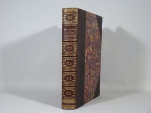 Antoine Van Dyck. Paris, Hachette, 1902. In-4, demi-maroquin brun avec coins, filets dorés, dos orné, tête dorée, non rogné (Reliure de l'époque). Luxueuse publication reproduisant cinquante chefs-d'œuvre d'Anton Van Dyck en héliogravure, avec un texte explicatif et une notice biographique par Max Rooses. Bel exemplaire monté sur onglets et relié avec soin. Dos légèrement passé. Ex-dono sur le premier feuillet.