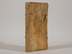 De ponderibus, sive de justa quantitate & proportione medicamentorum, liber. Lyon, [Macé Bonhomme pour] Barthélemy Molin, 1560. In-8, vélin à lacets de réemploi (Reliure ancienne). Première édition publiée en France du traité de posologie pharmaceutique de Guillaume Rondelet (1507-1566). L'édition originale serait de Padoue, 1556. Elle a été partagée entre l'imprimeur Macé Bonhomme et le libraire lyonnais Barthélemy Molin. Les pièces liminaires renferment un portrait de l'auteur gravé sur bois. Cachet sur le titre : Birmingham Medical Institute. Exemplaire placé postérieurement dans une couverture en vélin ancien. Des rousseurs et mouillures. Baudrier, II, 182 – Gültlingen, VIII, 116, n°275.