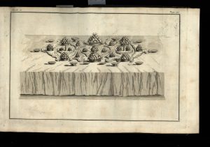 Le Cannameliste français, ou nouvelle instruction pour ceux qui désirent d'apprendre l'office, rédigé en forme de dictionnaire. Nancy, Abel-Denis Cusson ; et se vend à Lunéville, chez l'auteur, 1751. In-4, veau marbré, dos orné, pièce de titre rouge, tranches marbrées (Reliure de l'époque). Édition originale rare et recherchée d'un des plus fameux traités de confiserie français. Le titre du livre est tiré du mot cannamelle, ancien nom de la canne à sucre. Il s'agit d'un manuel à l'usage des débutants renfermant de nombreuses recettes de fruits glacés et confits, pâtes, biscuits, confitures, bonbons, nougats et liqueurs ; autant de friandises pour lesquelles l'auteur, qui était chef d'office et distillateur de Stanislas Leszczynski, avait mis à contribution Cécile, Travers et Touchard, ses confrères de Nancy. L'ouvrage est dédié au duc de Tenczin-Ossolinski, chef du conseil aulique de l'ex-roi de Pologne devenu duc de Lorraine et de Bar dont les armoiries ont été gravées en tête de la dédicace. Son illustration, d'une grande finesse, comprend un titre-frontispice et treize planches dépliantes dessinées par Philippe du Puy, peintre ordinaire du roi, et gravées sur cuivre par Jean-Charles François dit Lotha. Ces gravures, inspirées des travaux des ornemanistes, font du Cannameliste français un livre recherché des artistes et des orfèvres, qui y trouvent « des modèles de pièces élégantes et gracieuses du XVIIIe siècle, telles que gobelets, gobichons, verres à tiges pour monter un fruit, mettre des neiges, surtouts de table, cafetières d'argent, etc. », écrit Vicaire. Dos refait. Des rousseurs, mouillures et taches éparses atteignant quelques planches, déchirure épargnant la gravure sur la pl. 6 et aux pp. 227-228. Vicaire, 404 – Cagle, n°214 – Oberlé, n°122 – Simon, n°759 – Bitting, 185 (2e éd.) – Livres en bouche, n°211.