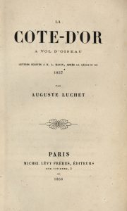 La Côte d’Or à vol d’oiseau. Lettres écrites à M. Havin, après la récolte de 1857. Paris, Michel Lévy, 1858. In-12, broché. Édition originale. Couverture défraîchie. On joint deux ouvrages sur les vins de Bourgogne : DANGUY (Réné). Les Grands vins de Bourgogne (La Côte-d’Or). Dijon, H. Armand, s.d. [1892]. In-8, demi-percaline rouge avec coins (Reliure de l'époque). Grande carte repliée en fin de volume. – [ALMANACH]. Almanach bourguignon pour 1858. Paris, dépôt central des almanachs ; Beaune, Lambert, [1858]. – Almanach bourguignon pour 1859. Ibid., [1859]. 2 volumes in-16, brochés. Couvertures fatiguées, rousseurs.