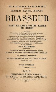 Nouveau manuel complet du brasseur, ou l'art de faire toutes sortes de bières. Paris, Encyclopédie-Roret, L. Mulo, 1896. 3 volumes in-18, dont un atlas, brochés. Nouvelle édition, entièrement revue et mise au courant des connaissances actuelles par Schield-Treherne, accompagnée d’un atlas contenant quatorze planches repliées. Dos fendus avec manques, un plat détaché, petites réfections de papier. On joint : QUEMINEL (Francois). Dissertation sur la bière, et réponse à la lettre anonime sur le mesme sujet. Lille, Les Éditions du Bibliophile, 1987. In-8, broché. Réimpression de l'édition de Bruxelles, 1737.