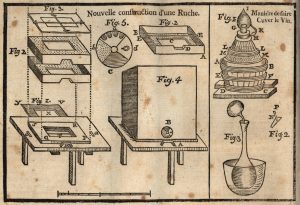 de pièces œconomiques et autres curieuses et utiles. Genève, P. Pellet, 1764. – Recueil choisi, instructif et amusant de tout ce qui peut le plus contribuer à vivre avec aisance et agrément à la campagne et à la ville. Genève, P. Pellet & Fils, 1767. 2 volumes in-8, cartonnage écru (Reliure de l'époque). Édition originale. Cette intéressante encyclopédie rustique est très rarement complète de ses deux parties parues en 1764 et 1767. La première renferme une planche dépliante gravée sur bois montrant une nouvelle construction d'une ruche et une manière de faire cuver le vin. C’est une sorte de Maison rustique du XVIIIe siècle, composée d'une quantité de traités concernant l'agriculture, la cuisine et la vie à la campagne : un traité des vignes par le sieur Cosme Trinci ; une manière de faire cuver les vins ; fabrication de la bière, du cidre et de l'hydromel ; cuisine, pâtisserie, confitures, liqueurs ; traités sur les figuiers, les artichauts, les fèves et haricots ; recettes de ratafiats de noix, de ratafiat de cerises à la provençale, soupe dauphinoise ; culture des pommes de terre, des poiriers, basse-cour… (G. Oberlé). L’ouvrage est inconnu des bibliographies gastronomiques et manque à la plupart des collections spécialisées. Des rousseurs, assez prononcées dans le premier volume, dues à la petite qualité du papier. Cartonnages frottés, mors inférieurs d’un volume. Conlon, nos 64391 et 67372 – Chwartz, n°379.