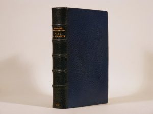 Paul et Virginie. Paris, Jouaust, 1869. Grand in-8, maroquin bleu janséniste, bordure intérieure ornée de filets, pointillés et fleurons dorés, doublures et gardes de moire bleue, tranches dorées sur témoins, étui bordé (Canape, 1919). Belle édition parue dans la collection des Romans classiques du XVIIIe siècle, avec une préface de Jules Janin et quatre eaux-fortes originales de Valentin Foulquier. Elle a été tirée à 342 exemplaires numérotés. Un des 2 exemplaires de tête imprimés sur parchemin, celui-ci le n°1, avec les eaux-fortes avant la lettre. Superbe exemplaire en reliure janséniste de Canape. Des bibliothèques Tristan Bernard (1924, n°93), avec ex-libris, et Bernard Bloch-Levalois, avec ex-libris. Bas de l'étui frotté. Toinet, n°165 – Vicaire, VI, 1183.