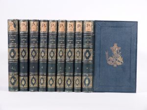 Histoire de la République de Venise. Paris, Firmin Didot, 1853. 9 volumes in-8, demi-chagrin vert, plats de percaline estampée, emblème doré sur le premier plat, dos orné, tranches mouchetées (Reliure de l'époque). Quatrième édition, augmentée des critiques et observations de Tiepolo et de leur réfutation par Daru. Elle est précédée d'une notice sur l'auteur par Viennet. Infimes frottements aux reliures. Cachets de bibliothèque sur les titres et étiquettes de cote au dos des volumes.