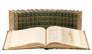 16 volumi in-8° (mm 192x111). Pagine 408; 743; 409; 109; 519; 690 (i.e. 670); 662; 599; 554; 896; 354; 560; 475; 548; VII, [1], 395; 484 + 1 atlante in-8° oblungo (mm 258x185). Pagine 63 con 159 tavole numerate I-CLIX incise in rame. Alcune mancanze: al quarto volume perdita di due carte (pagine 49-52) al posto delle quali sono state erroneamente ripetute le pagine 25-28; al nono volume fascicolo 44 legato per errore al posto del 32, con conseguente perdita di 6 pagine di testo. Nel complesso fioriture marginali e perlopiù lievi, con arrossature più decise alle tavole LXIV e CII ma esemplare completo di tutte le bellissime incisioni in rame. Legatura in mezza pelle verde coeva con piatti in cartone marmorizzato. Titoli e decorazioni in oro sul dorso a 4 nervetti. Alcune mancanze e fori di tarlo alle cerniere di due soli tomi. Al contropiatto anteriore di tutti i volumi ex-libris di antica provenienza. -