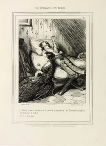 Les Étudians de Paris. [Paris, Aubert], s.d. In-4, demi-basane fauve, dos lisse orné, non rogné (Reliure du XIXe siècle). Suite complète de 60 lithographies en noir par Gavarni. La planche 60 est coloriée et gommée au pinceau et une épreuve volante de la planche 33 est jointe au volume. Frottements à la reliure, dos éclairci.