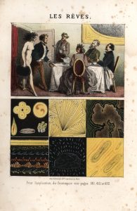 Les Rêves et les moyens de les diriger. Observations pratiques. Paris, Amyot, 1867. In-8, demi-basane fauve avec coins, dos orné, non rogné, partiellement non coupé (Reliure moderne). Édition originale, ornée d'un étrange frontispice lithographié en couleurs. « Ce très curieux livre résume savamment la Science des songes depuis l'Antiquité la plus reculée jusqu'à nos jours et analyse tous les ouvrages de quelque importance qui ont paru sur le sujet. Outre de nombreuses anecdotes personnelles à l'auteur, on y trouve des instructions nettes et précises pour répéter les fort singulières expériences de l'auteur dans cette branche des Sciences Psychiques » (Caillet). « C'est une véritable encyclopédie sur le sujet » (id.), qui a été lue et estimée tant de Freud et des pionniers de la psychanalyse que de Breton et des surréalistes. La couverture illustrée par Alfred Darjou n'a pas été conservée et le faux-titre est relié à la suite du titre. Pâle mouillure et quelques petites rousseurs Caillet, n°5123.