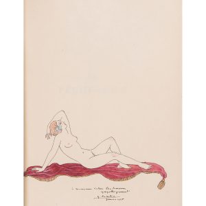 Tirage limité à 1099 exemplaires numérotés ; l’un des 99 exemplaires hors commerce, parmi lesquels l’un des 10 sur papier du Japon impérial (hors commerce n° V, imprimé pour Valère Bachmann), avec une suite en noir sur papier de Chine et un beau dessin original à la plume signé et aquarellé.