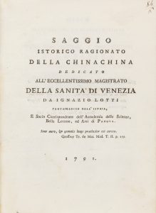 Lotti Ignazio, Saggio istorico ragionato della Chinachina. [Venezia]: [Sebastiano Valle], 1791.