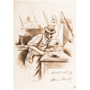 BOUTET (Henri). Métiers de Paris, contenant trente-cinq eaux-fortes originales. Paris, Chez l’Auteur, 1910 ; in-8, broché, jaquette rempliée et ornée d’une eau-forte en couleurs par Henri Boutet, une petite piqûre à la jaquette.